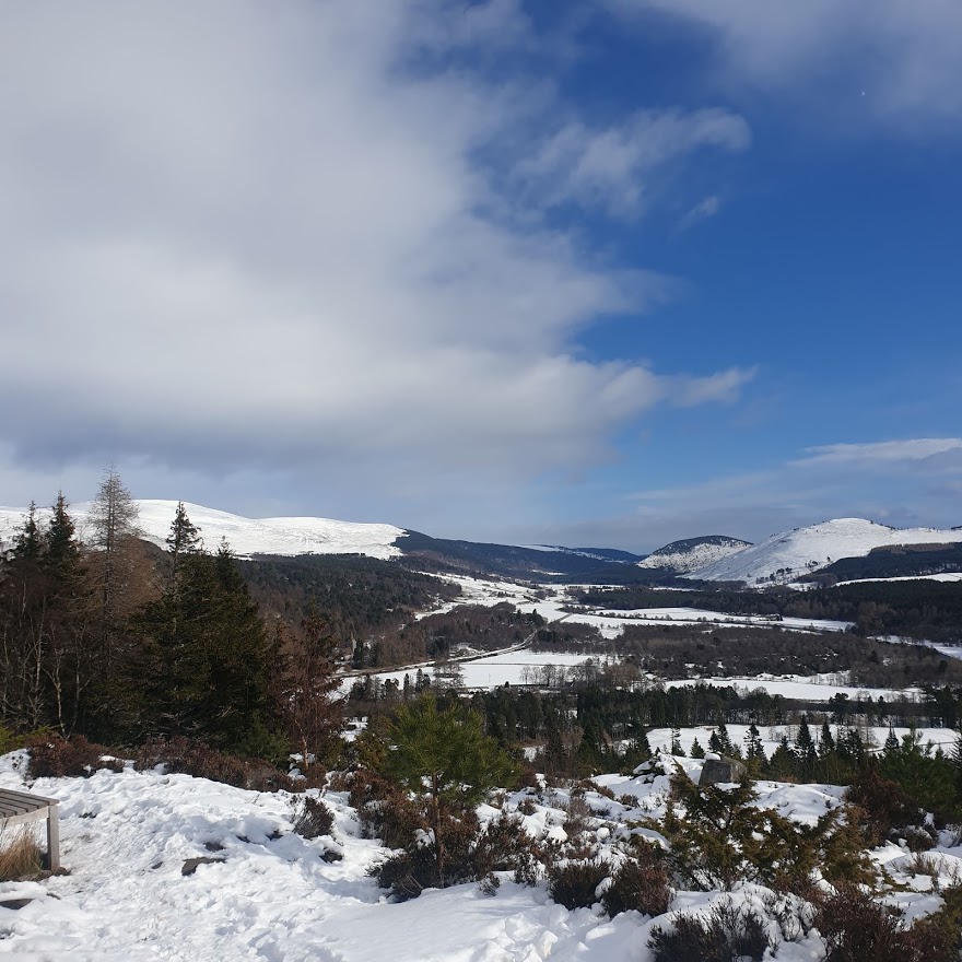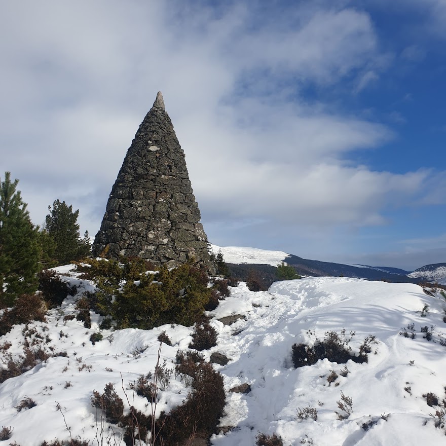 We parked the car in the village of Crathie, and following instructions for the walk on the walkhighlands website. Here you will find a detailed description of the route. There was the odd moment of head scratching but we did manage to find all but one cairn, probably because the snow was covering the track as opposed to unclear instructions.